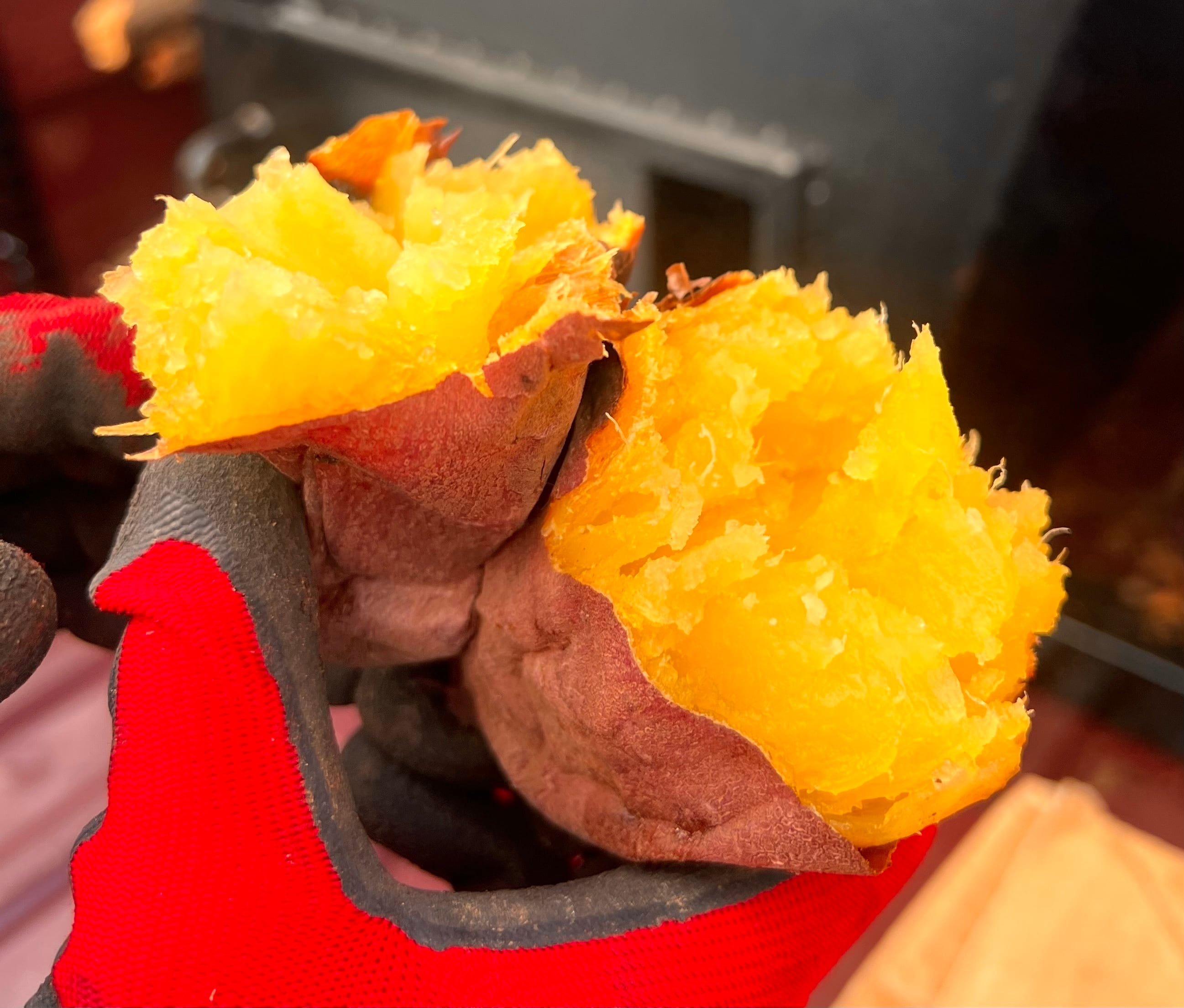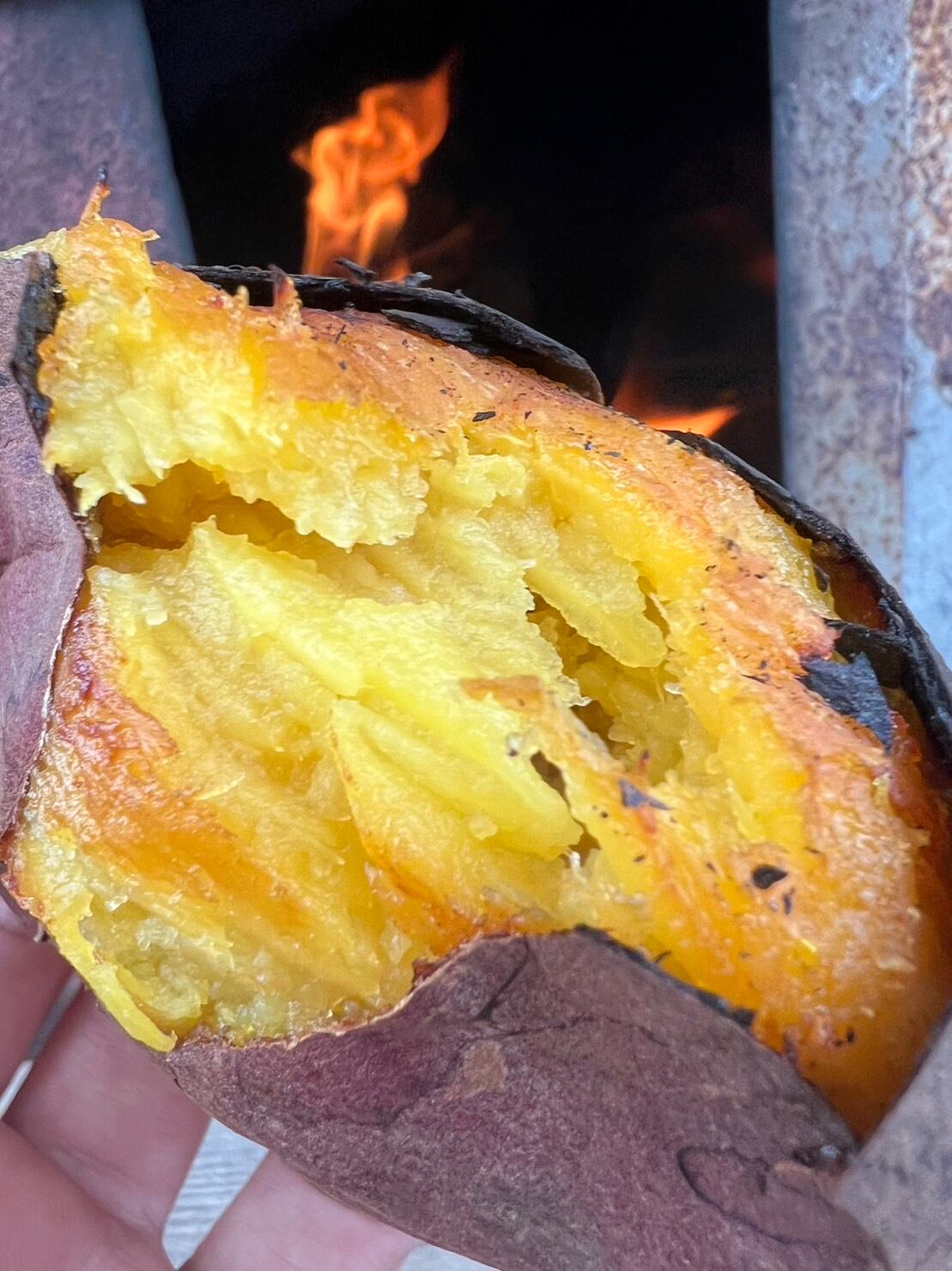 焼きたての石焼き芋の香りに包まれながら、口のなかに広がる甘み。